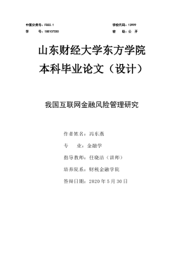 中图分类号:F832.1学校代码:13999学号:180107330密级:公开山东财经大学东方学院本科毕业论文(设计)我国互联网金融风险管理研究作者姓名:冯东燕专业:金融学指导教师:任晓洁(讲师)培养院系:财税金融学院答辩日期:2020年5月30日ResearchonInternetFinancialRiskManagementinChinaAThesisSubmittedfortheDegreeofBachelorCandidate:FengDongyanSupervisor:RenXiaojieSchoolofDongfangShandongUniversityofFinanceandEc...