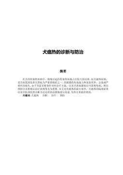 犬瘟热的诊断与防治摘要在犬的传染性疾病中,病毒引起的传染性疾病占比较大的比重。如犬瘟热疾病,是目前我国危害犬类较为严重的病症之一。其极强的传染能力和高致死率,会造成严重经济损失。由于目前无特效针对性治疗方案,以及犬患病康复后可获得免疫,所以预防以及患病后治疗处理等尤为重要。本文对犬瘟热的流行病学,犬瘟热的临床症状以及中医西医的诊断方法还有防治措施进行综述,为养犬者提供帮助。关键词:犬瘟热诊断治疗预防目录1概述.................................................................................................