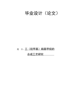 毕业设计(论文)题目:三(羟甲基)硝基甲烷的合成工艺研究摘要截至目前,国内外现有的三(羟甲基)硝基甲烷(TN)的工艺条件还不够成熟,具有杂质多、生产时间长、产量低、副反应、质量不稳定等问题。本文以氢氧化钙作为催化剂,将甲醛溶液加入硝基甲烷来对三(羟甲基)硝基甲烷(TN)的生产工艺条件进行优化。通过分析亲核加成反应的反应时间、物料比、反应温度、催化剂、pH值等五个因素对产率的影响确定最新的工艺条件。步骤如下:以水为溶剂,氢氧化钙为催化剂,在40℃的条件下,将3.2份甲醛滴入1份硝基甲烷中,反应进行5小时。用硫酸除去钙离子、产率高达89.1%。关键词:三(羟甲基)硝基甲烷,合成,工艺条件,亲核加成...