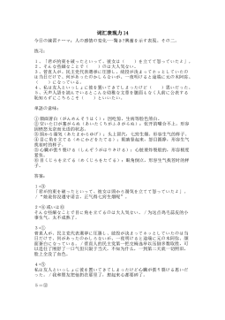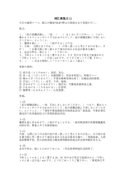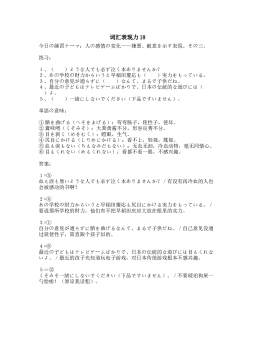 词汇表现力11今日の練習テーマ:個人の願望?欲求?野心の程度を示す表現その二。 练习: 1、「私の就職活動に、一切、( )をしないでください。」つまり、裏からコネクションやツテで力をかけたりして、私の就職活動に干渉しないでください、ということ。2、獲物を前に( )。三流のすることだな。3、大体、人間と言うのは( )の突っ張ったと考えておけば良い。その( )を最大限に突っ張らせて成功を収める社会が資本主義だ。4、会合の件は、彼にも( )ておいた。5、下町とレトロをこよなく愛する20、30代の女子有志で結成された「下町レトロに( )の会」webです。どうぞごゆっくりご覧下さい。6、( ...